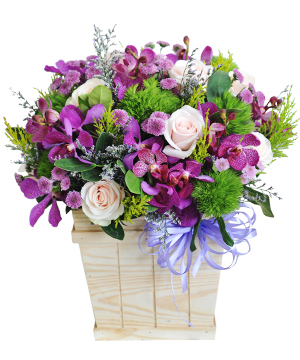 Được thiết kế với tông vàng tươi sang, hộp hoa "Sum họp" mang lại cảm giác ấm áp, tươi vui. Hoa hướng dương xen lẫn cùng hoa mõm sói như hình tượng cả gia đình sum họp. Mẫu hoa thích hợp tang cho những người thân yêu của bạn.